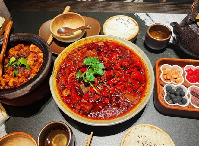 上河川古法川菜除了经典川菜,店里的创新菜也别具一格,每一道都像精心雕琢的艺术品,色香味俱全。在这里,你既能品尝到正宗的古法川菜风味,又能感受到餐厅满满的用心。