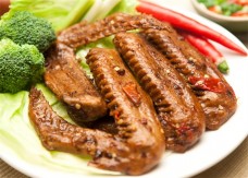 圣手熟食选肉质好的猪蹄,加入老姜、胡椒等香料,卤至20分钟后翻面,一般1小时卤成。圣手熟食集粤菜和川菜所长,既有粤菜和潮汕菜注重的用料选料、味尚清鲜、油而不腻的特色,更有川菜调味多变、麻辣浓郁的地方风味。
