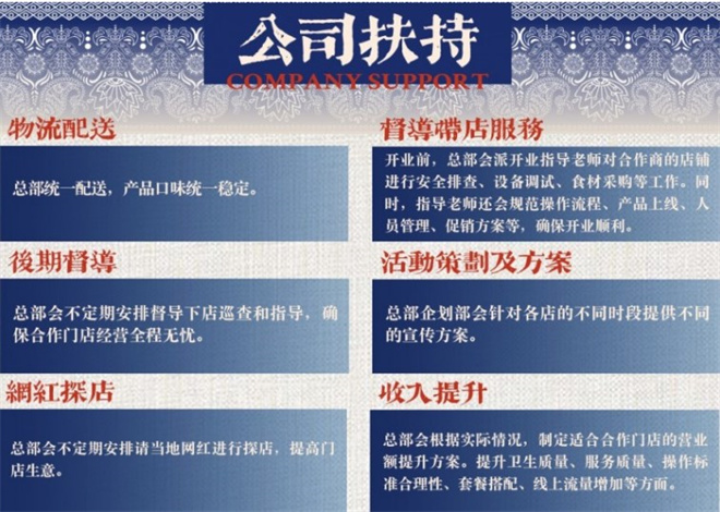 主要原料由总部集中采购、统一配送,成本更低,回本更快。