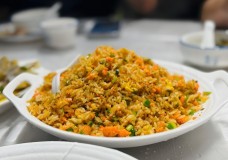 海鲜蛋炒饭:精选新鲜海鲜食材和鸡蛋,加以秘制酱料相融,鸡蛋与海鲜均匀包裹每粒米饭,嫩熟适中,整碗米饭透出金色光芒,唇齿间留下令人神怡香味,在四王爷香港炒饭中感受海洋味道。
