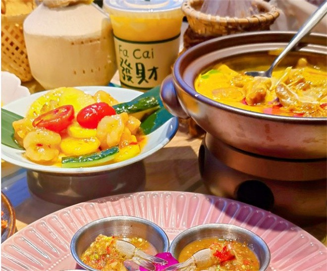 冬阴功海鲜汤、菠萝炒饭、双色糯米饭、甜品,统统有颜有味,品牌恪守味道和颜值双重标准。品牌有实力更有颜值,设计感十足的餐厅,以白金色调为主,超大就餐环境,畅享视觉盛宴,金色的线条,柔和的灯光柔柔倾斜下来,格调满满,独具仪式感和逼格,金色线条,多了一丝沉稳和高贵。大面积白色加上温柔暖光,惬意舒适,所有的一切都恰到好处。舒适的软皮卡座,餐具讲究,一桌一椅,一刀一叉,都注入了心思。