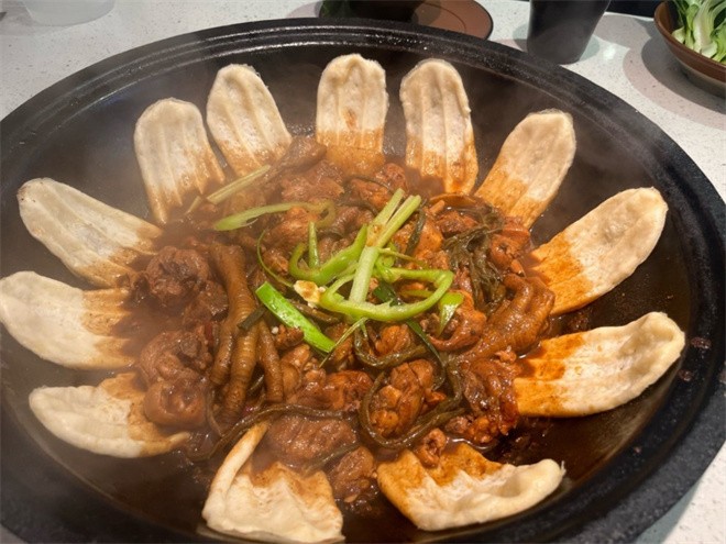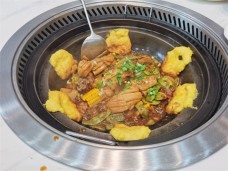 土灶世家地锅鸡超级大铁锅,份量很足。选用的是散养草公鸡,鸡肉肉质紧实滑嫩,有弹性,非常鲜美有嚼劲。炖个15分钟,味道一绝。地锅鸡贴饼也超级好吃,香脆沾汤汁,非常有嚼劲。