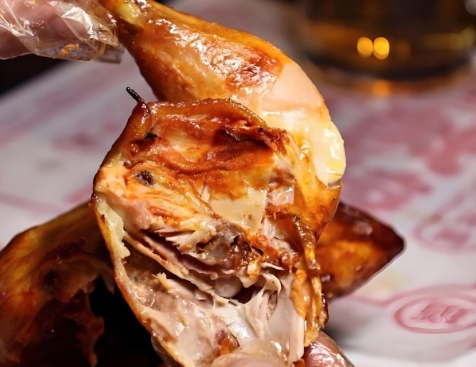 来自上海的“王都尉”坚持用真正烤的方式来对待它们家的绝大多数产品,包括鸡腿、香肠、烤串等。200度的烤箱温度,经过足足20分钟的等待,才能等来一只外表金黄、汁水滴答的“烤鸡”。奥尔良口味更适合大多数人,口味比较经典,甜中带着微微辣。专业养殖厂采购的三黄鸡要提前八小时腌制入味,所以吃起来滑嫩不寡淡,鲜香味都进到了鸡肉里头。盐焗口味能吃到鸡肉本身的鲜味,咸度适中、不过分,是那种回味的香和鲜美。奥尔良风味的手枪腿,咬上一大口,超级满足~甜度不会过甜,调味比较恰到好处。烤肉串出炉啦,撒上一把孜然,再来一点儿辣椒面,香香嫩嫩,不会干柴~纯肉烤肠一口下去:脆爽,肉香满口,肉质很有弹性~咸甜度比较平衡。