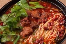 王记牛肉汤餐饮管理有限公司的王记牛肉汤是在淮南牛肉汤自有工艺的基础上加以改进又增加了松针、决明子等十几种滋补中草药制造/精制换季自有工艺。王记牛肉汤选用上乘黄牛肉、牛骨,经过3个多小时的精心熬制而成。清香可口,喝过口不干、嗓不燥,再配上精制粉条、豆饼、豆腐皮百吃不厌,也是中华大地家喻户晓的地方特色小吃。