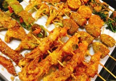 小海地阿姨炸串店铺主营的产品其实很简单,自制鸡排、自制鸡串、自制牛柳、拉丝芝士热狗棒、自制虾仁、素串等都是很受欢迎的品牌。面糊、面包屑的厚度在小海地阿姨炸串多年精湛厨艺的把持下,薄厚程度适宜,完全避免太厚炸出来油腻糊嘴、太薄里面的肉又会吸油变糊等口味问题的出现。自制的番茄酱、甜面酱、花生碎、孜然、辣椒粉5种酱料调料,更能大大满足不同食客的不同口味需求。