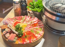 小牛家东北烤肉真的是绝绝子!牛肉色泽红得透亮,仿佛在闪闪发光,纹理细腻得如同上好的丝绸,一看就是精选上等牛肉。放在烤盘上,瞬间香气四溢,咬上一口,鲜嫩多汁,口感爆棚。五花肉完美的肥瘦比例,切得薄厚均匀,烤的时候油花“滋滋”冒个不停,那香味,勾得我肚子直叫。蔬菜们也活力满满,生菜脆嫩爽口,金针菇新鲜得能闻见泥土的芬芳,每一口都是大自然的馈赠。