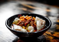 喜江南馄饨的皮要从面粉加鸡蛋做起,不掺一点水的和面,然后反复的揉面让面团受力均匀,这样最后的面皮入口就会爽脆弹牙。煮熟以后热腾腾出锅,馄饨皮薄馅厚,鲜味浓郁,香气喷薄。口感轻滑丝薄,小巧得一口就可以吃完。这里长年累月生着旺火,煮着各类面食,汤头一冲,辣油一舀。路人纷纷循香而来,在面馆前排起长龙。店面不大,但每逢用餐时间,店里总是会轮流换着一波又一波的人。
