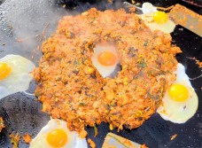 铁板炒饭因粒粒松散、碎金闪烁、鲜美可口而著称,辅以火腿、虾仁、鸡蛋加上独特的工艺配料,绝对是快餐饮食中的佳品。品种多样:有黄金蛋炒饭,火腿炒饭,扬州炒饭,什锦炒饭,腊肉炒饭,香肠炒饭,腊肠炒饭,海鲜炒饭,牛肉炒饭,孜然羊肉炒饭,辣白菜炒饭,鸡肉炒饭,培根炒饭等。