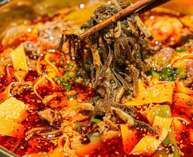 一碗拥有悠久美食文化的成都美食,因其麻辣鲜香的味觉体验,拥有广泛的群众基础。将食材放入高汤中汆烫,冒熟后淋上调料,再加一勺汤底,便是一碗冒菜加盟连锁店里的蓉品道冒菜。豆花冒菜在传统冒菜的基础上,不断创新,不断融洽,加以自制豆花,麻中不麻,辣中不辣,老少皆宜,健脾健胃,不上火,不败胃,鲜香可口!回味无穷!56种食材精心调制、熬制“比肉都贵的清油锅底,经典烤鸭、特色牛肉、自己喜好的各色青睐菜品。
