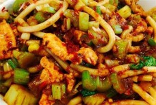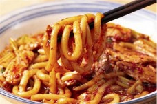 新疆特色炒米粉,一碗正宗的新疆炒米粉是用像筷子一样粗的米粉,加上秘制的酱料爆炒微煮,然后再加上鸡肉或者牛肉、芹菜等配菜,一碗鲜红诱人、汤汁浓郁的新疆炒米粉就出锅了。一百家新疆炒米粉店有一百种味道。新疆特色炒米粉在各地都拥有较高的人气度,是吃够的人们都口口陈赞的炒粉品牌。