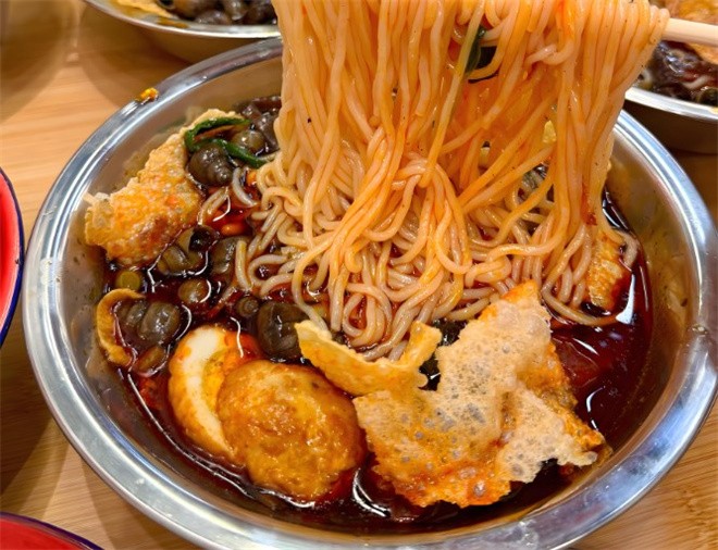 轩二姐螺蛳粉,螺蛳是必不可少的了!熬汤&配料都离不开的螺,多少人来了就想嗦上一口这每日从柳州运送新鲜的柳江石螺,原本就个大味鲜的柳江清水石螺,再经过师傅的翻炒后更加地滋味十足。每块腐竹都需要每日现炸,放入汤中,浸泡在汤汁里的腐竹虽然软了下来,但入口时却感觉脆脆的、有嚼劲。广西人吃螺蛳粉必点配料:吸汤高手炸蛋、Q弹十足的卤香虎皮猪手、超入味的卤香凤爪和船家鸭掌,都点上,一次性吃到爽!轩二姐螺蛳粉色彩鲜艳、爽滑麻辣的螺蛳和脆爽可口的酸笋结合,荤素搭配、辣中有香、粗中带细,满足人们的诸多要求。店内的螺蛳粉口味多样,食材新鲜,Q弹细腻,嫩滑爽口,给顾客带来不一样的嗦粉快乐,深受顾客的喜爱和追捧。