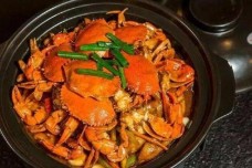 阳宸记肉蟹煲一上桌橙黄的肉蟹就吸引了吃货的眼球,洁白的蟹肉配搭橘红耀眼的饱满蟹黄,壳脆肉紧,饱满多汁,美味的酱汁渗入了肥美的蟹肉里,大口吃来,很是过瘾。获得一致好评的还有肉蟹煲里的凤爪,跟别家的都不一样,鸡皮绵软而有光泽,吸收了煲内的汤汁,味道鲜美。