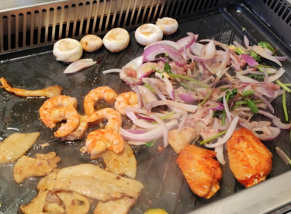 尹三顺首尔自助烤肉肉类食材大部分提前都经过腌制,大家烤熟之后蘸取秘制的酱汁就可以食用了,非常入味,除了各种经典牛肉之外,店内的鸡中翅、鸡脆骨、羊排、猪五花等也受到了热烈欢迎。