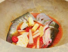作为湘菜中的一道名菜,其制作方法很是独特,用一块大的花岗岩岩石凿成有双耳的石锅,将鱼放在石锅内烹煎,然后,再加上以辣椒为主的各式佐料,又再加上一些滋补药材,这样,经过一番复杂的烹调工序的操作流程之后,一锅“石锅鱼”诞生了。当用石锅烹制的“石锅鱼”端上桌来时,一定会令你垂涎三尺。石锅鱼的主料选用草鱼,选料很有讲究。石锅鱼的鱼片刀法要求非常高,刀工好的师傅,切出来的鱼片看上去又长又厚,分量特别多。鱼片在入锅前都必须用油沥过一遍。这时鱼片都卷起来,如果选用的鱼不是鲜活的,那么鱼片都是直直的。等石锅里高汤加热到翻滚,放入鱼片。