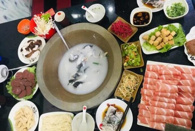 石锅中的鱼、肉吃完后,汤汁更是不能错过的美味,可以直接喝,还能涮各种蔬菜肉类……就着鲜美的汤汁涮出的蔬菜,轻轻一咬,蔬菜就着鱼汁的美味包裹整个口腔,让味蕾感受到无上的享受。