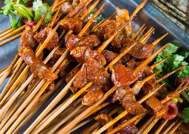 炸把以独特的腌制秘方8中配料特别的组合腌制而成。酱料也是我们家的一大特色,大厨特别的秘制酱料,有孜然味的和辣味的酱料,辣酱真的很够味。招牌鸡翅,入口微甜,个头很大一个,而且鸡翅的外皮是脆脆的,里面的鸡肉咬一口感觉要爆汁。炸肉串、炸脆骨,这个是提前卤制而成,再炸一道!