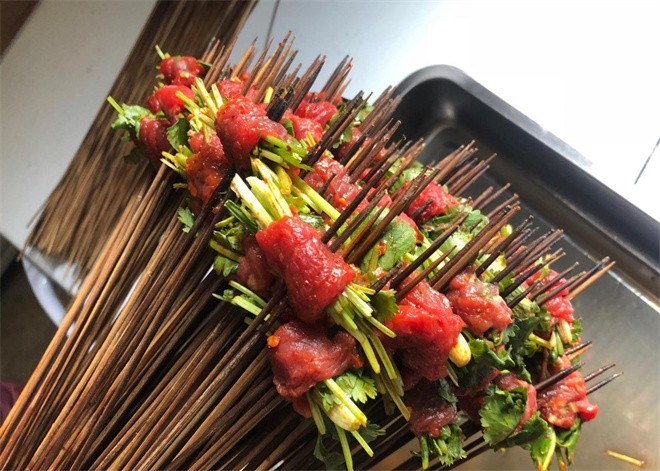 丈八串串的牛肝菌、鸡枞、金针菇,各类山珍自不必提,秘制牛肉,巴掌大的牛臀肉用秘制调料腌制后,在红彤彤的辣椒面里一裹,颜色亮丽,口感嫩滑,还有小小的晶莹剔透的鹌鹑皮蛋,酱制好的猪小排,脆嫩的鲜毛肚,这些都是在别家吃不到的,煮完山珍的砂锅汤底,再涮烫其他食材更显味道鲜美。