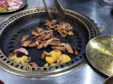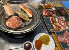 烤肉之前先来份调料,中晟家烤肉特有的配方比例加上不同的腌制手法是一绝,咸口的“鲜族干调”“秘制辣酱”,看着红艳艳,但不呛口,没有辛辣,且香味十足。出彩的要数老式泥炉的标配“甜芝麻酱蘸料”,麻酱加上一圈白醋一圈酱油调开,配上白糖、葱花、香菜,烤什么肉都越吃越香。