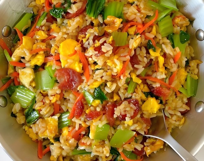 香肠蛋炒饭:肥瘦相间的香肠,多一分则腻,少一分则淡。精心熬制后,切成一片一片,点缀在被香滑蛋液包裹的米饭上,如红色的花朵,冲击视觉的同时,让味蕾觉醒。