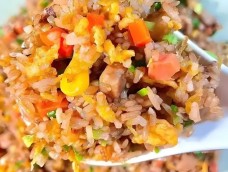 什锦蛋炒饭:鸡蛋、米饭、酱油,极简的食材搭配,碰撞出平凡却又终生难忘的味觉火花。轻轻咬一口,如同回忆里儿时的味道,像妈妈的爱,细腻的萦绕在唇齿间。