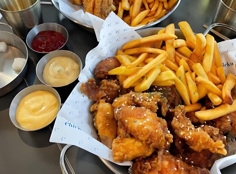 金黄酥脆的炸鸡,外皮轻薄如纸,内里肉质饱满多汁。从经典原味到香辣、蒜香、椒盐……多种口味任你挑选,堆成小山般的炸鸡等你来征服!除了炸鸡,炸薯条和炸鸡翅也非常好吃。薯条外脆内软,配上特制的酱料,每一口都是享受。鸡翅个头大,肉质紧实,咬一口还会爆汁哦!