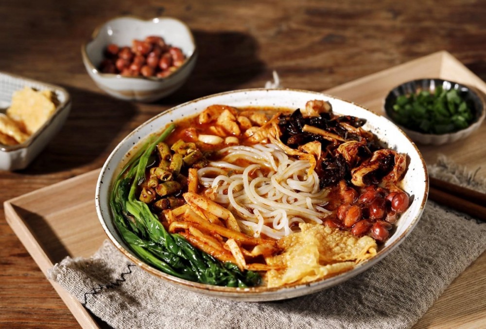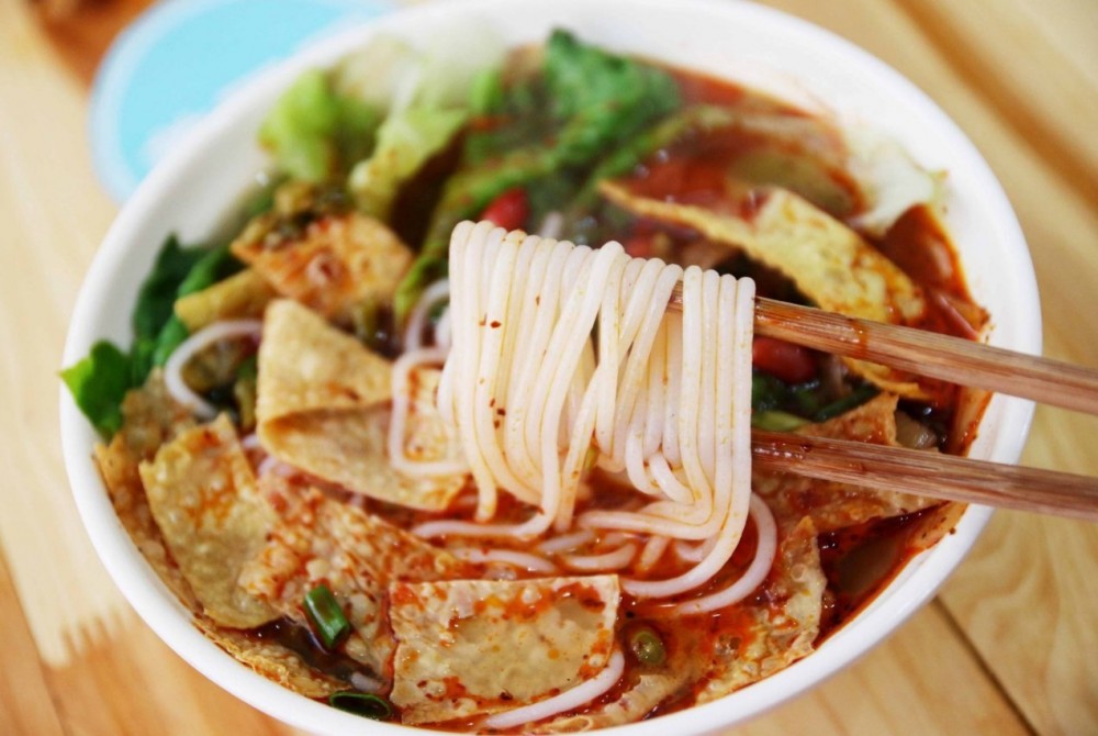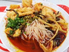 这种螺丝粉既鲜香又有螺味,者或加点点辣酱,更是爽口提神。再加上酸笋、花生、油炸腐竹、木耳、酸豆角、萝卜干、鲜嫩青菜等配料,香气四溢,风味更加独特,辣椒不辣喉,尝倒螺蛳原汤的滋味,浓郁不浑。颇有润物细无声之感。